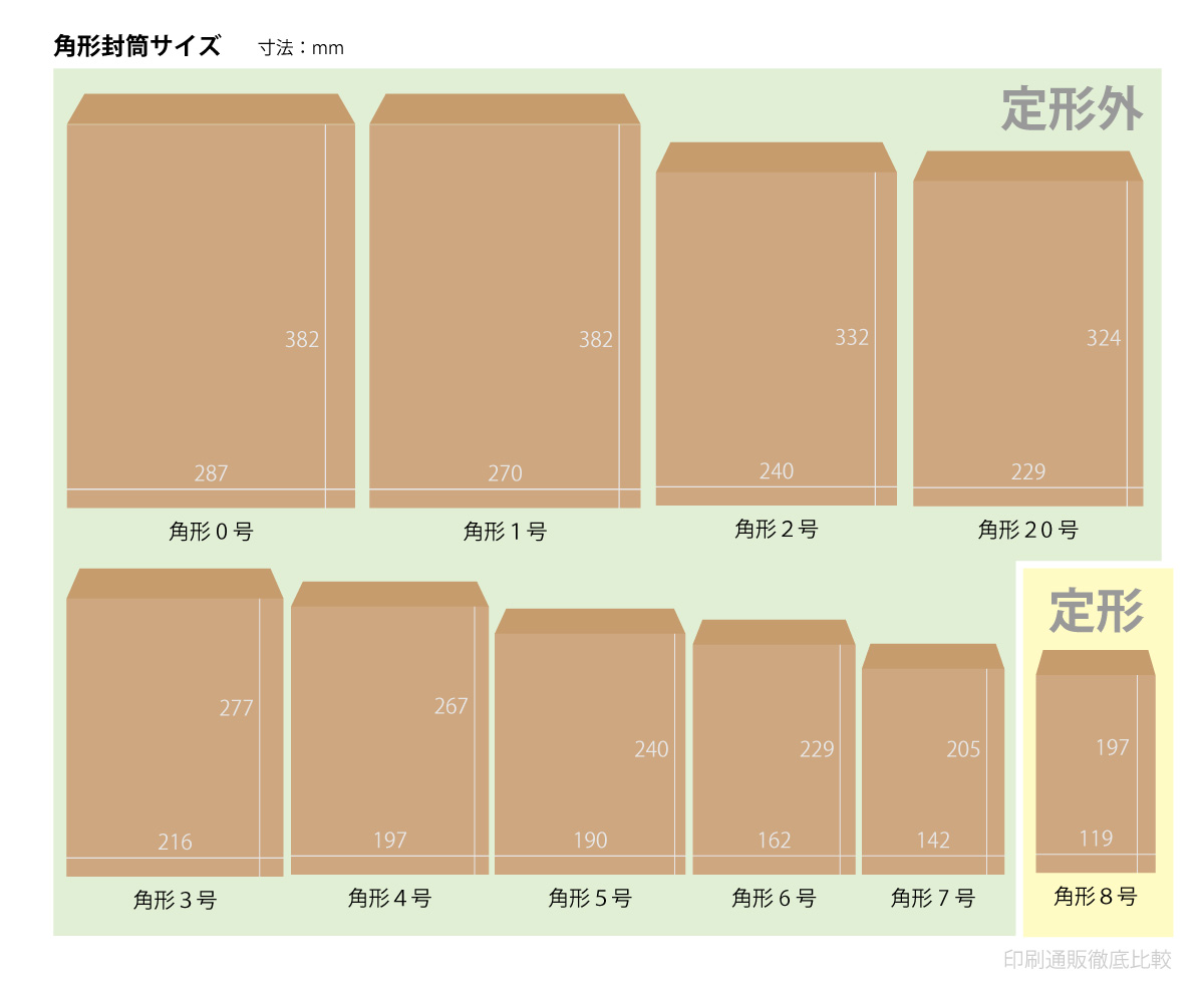 角形封筒は、封入口を上にした際に、長辺が短辺の2倍以下の封筒を指します。