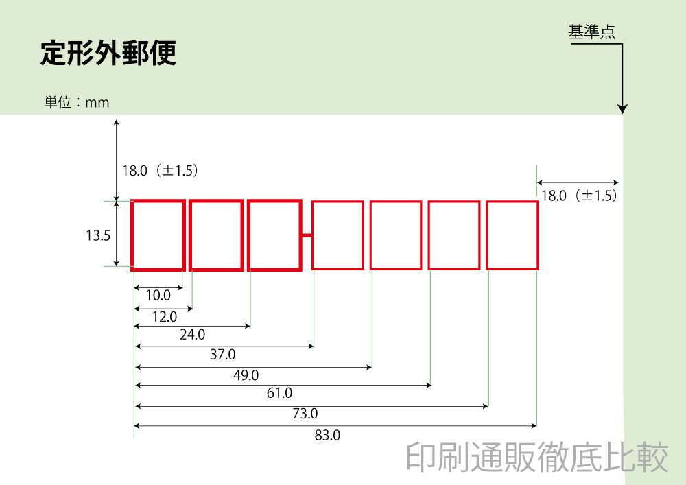 郵便枠の位置、サイズ、色などは規定が決まっているのでご注意。