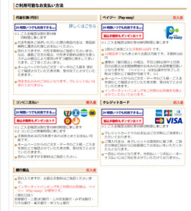 支払い方法は前払いの銀行振込やクレジットカード決済の他、代引を利用することもできます。支払い方法によって手数料が発生する場合があるので、よく確認して選ぶことをおすすめします。