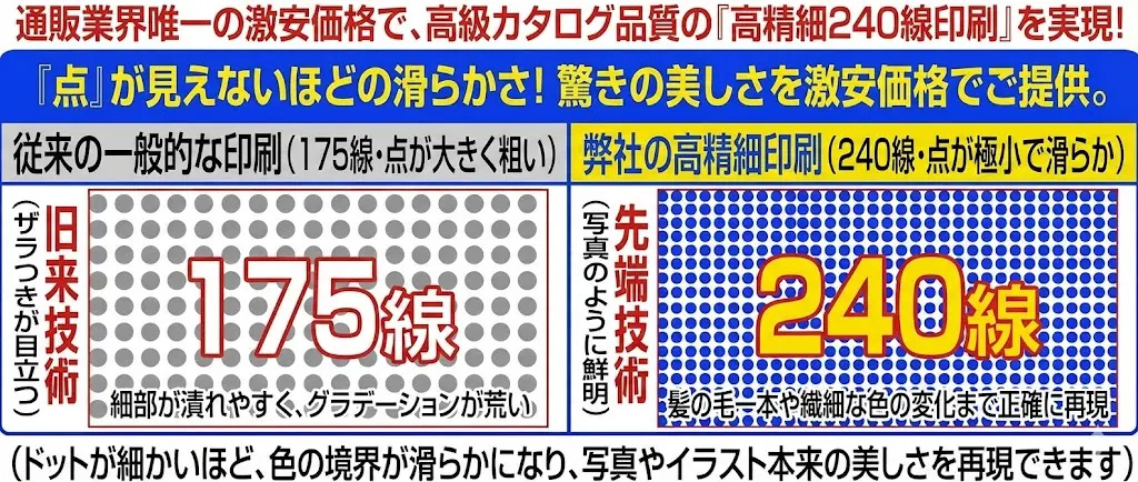 『高精細240線印刷』なのでドットが細かく、きめ細やかな再現になっています。