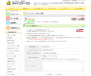 データの準備が終わったら、先ほどの「ホームページから入稿」ページにて必須項目を入力して行きます。
