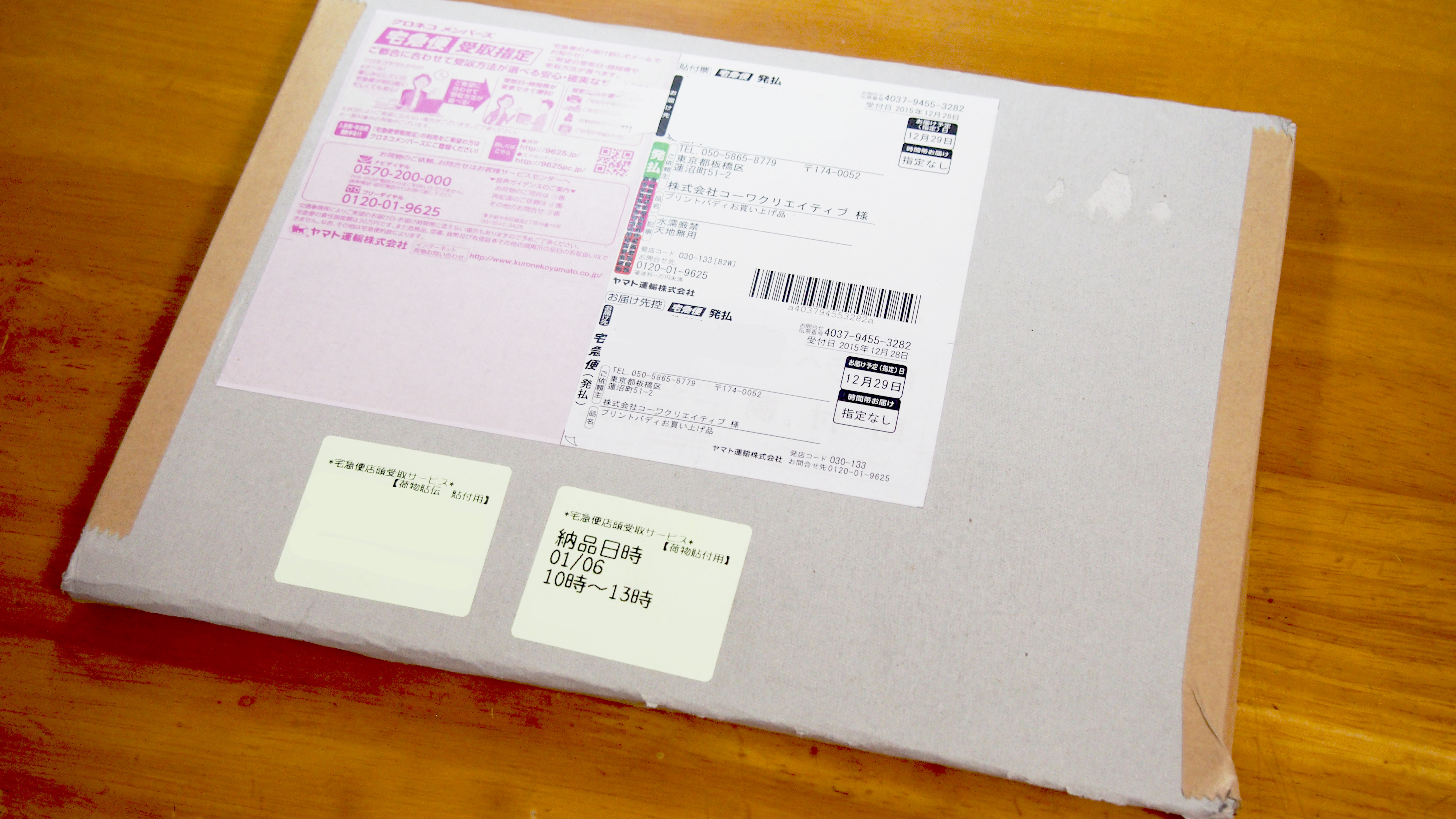 12/17にデータを入稿し、6営業日後の12/28に発送される予定でしたが、発送完了メールが1/5に届きました。なぜこんなに遅れたのだ!?とヤマト運輸さんの荷物追跡サービスを確認したら、1度目のお届けの際に「住所不明」で営業所戻りしていました。そして年末年始を挟み、1/5お届けとなったようです。伝票番号を入れるだけで、荷物がどのような経緯をたどって配送されたのかチェックできるので便利ですね!